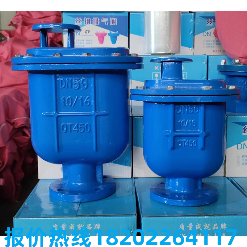 复合式排气阀工作原理是当管内开始注水时,塞头停留在开启位置,进行大量排气,当空气排完时,阀内积水浮球被浮起,传动塞头至关闭位置,停止大量排气;当管内水正常输送时,如有少量空气聚集在阀内到相当程度,阀内水位下降,浮球随之下降,此时空气则由小孔排出。当抽水机停止,管内水流空时,或遇管内产生负压时,此时塞头开启,吸入空气确保管线安全。